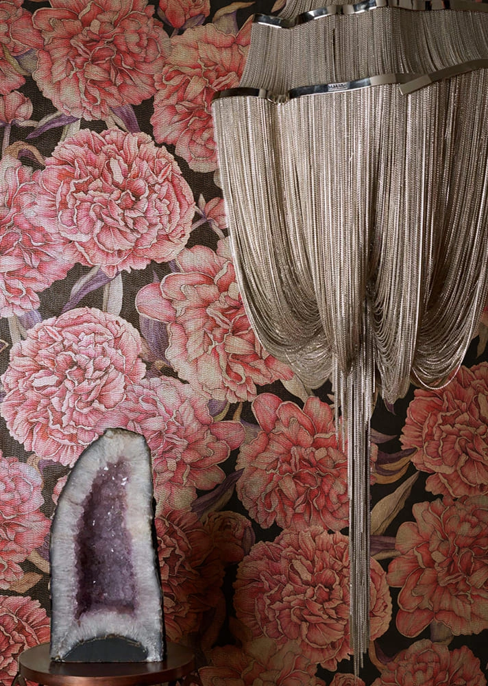 Обои, которые рушат стереотипы: розовый цвет без вычурности, цветы без излишней напыщенности. Броско, но со вкусом.