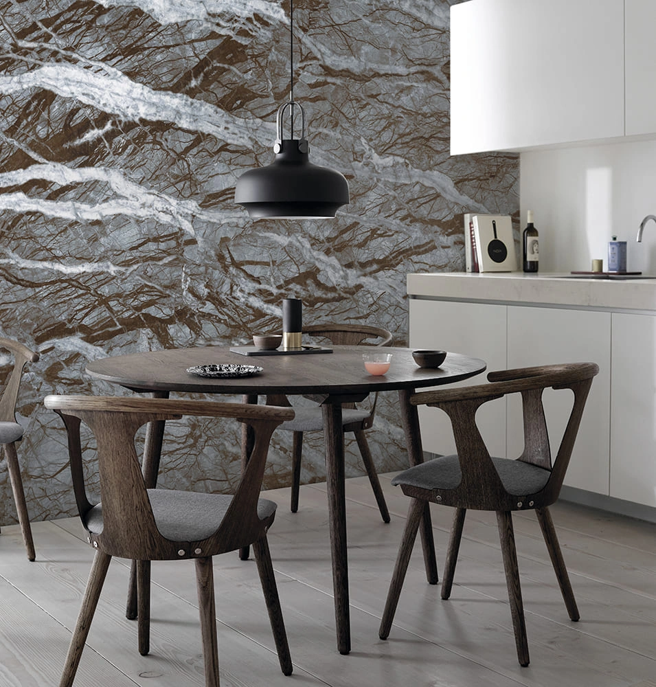 Чернильная капля на поверхности ледяной воды. Мрамор цвета чёрного янтаря — камень, полный мистики и загадок.
