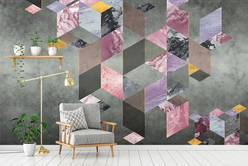 Геометрия в сочетании с текстурами и флюидными разводами создает неповторимую гармонию твердой статики и мягкой текучести.