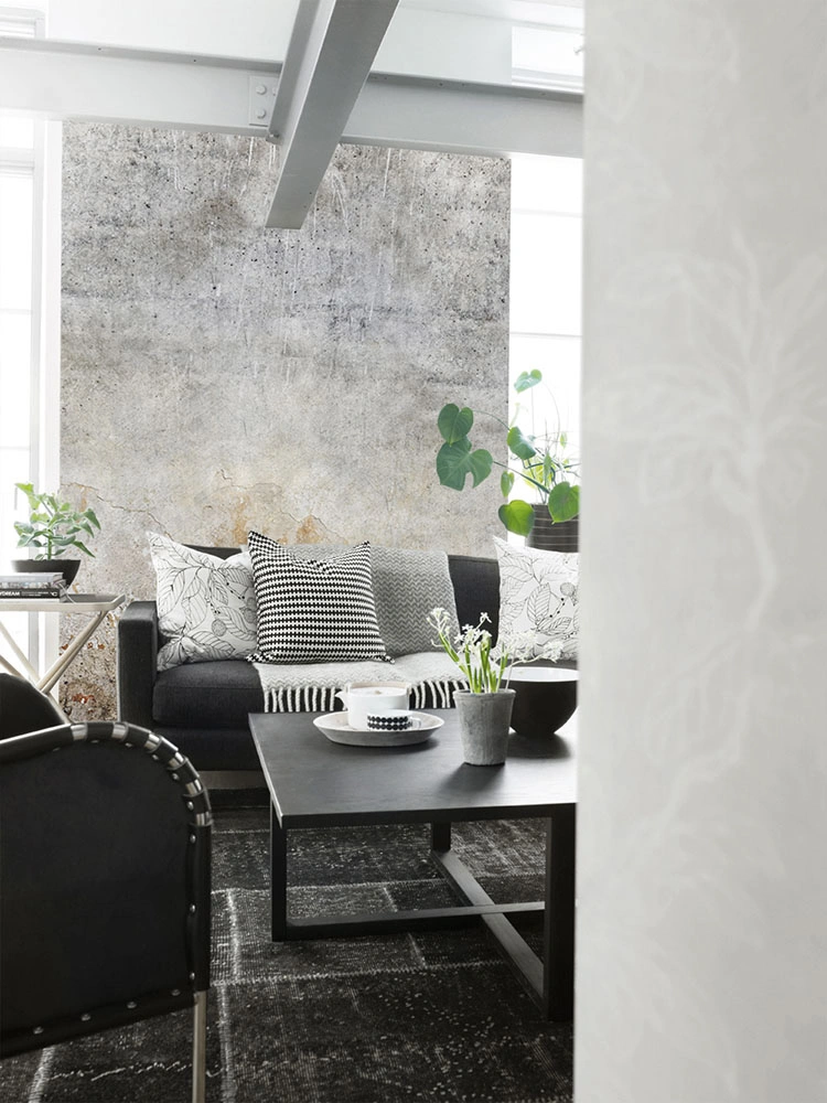 Если вам не хватает мастерства или смелости эффектно состарить собственные стены, воспользуйтесь фотообоями. Это самый простой способ сохранить следы времени в первозданном виде на достаточно долгий срок.