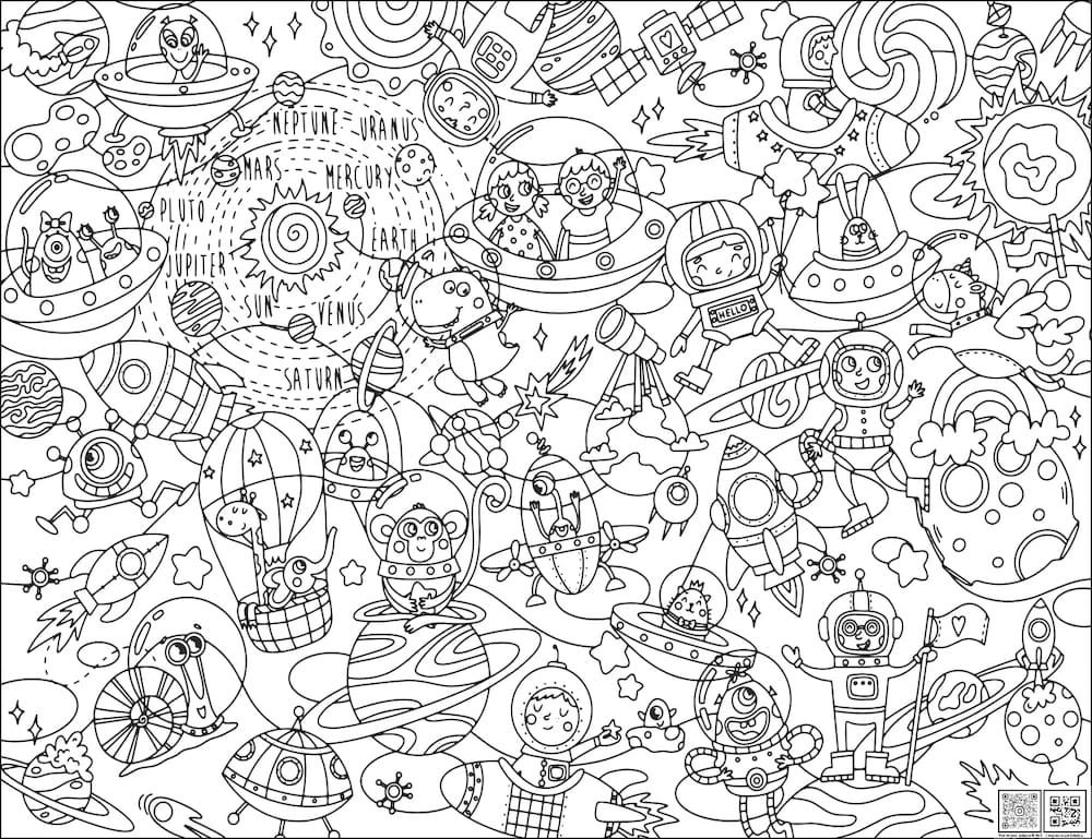Раскраска с изображением забавных покорителей космоса. Множество персонажей и мелких деталей сделают процесс раскрашивания увлекательным и творческим. Раскраски помогают развивать воображение, тренируют мелкую моторику и являются отличным способ снять эмоциональное напряжение.