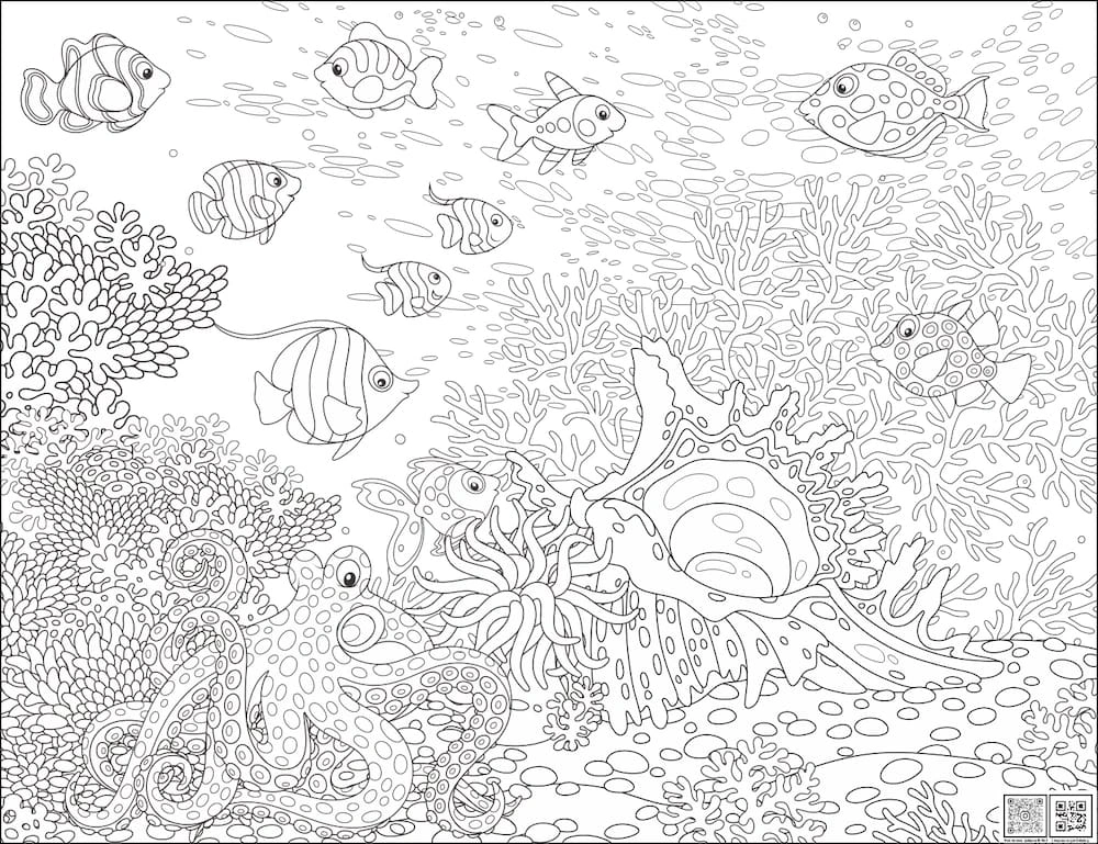 Подводный мир, населённый диковинными жителями – такой сюжет привлечёт любителей приключений. Добавьте цвета, и вы увидите ярких рыбок, необычных ракушек и чудесные морские растения.